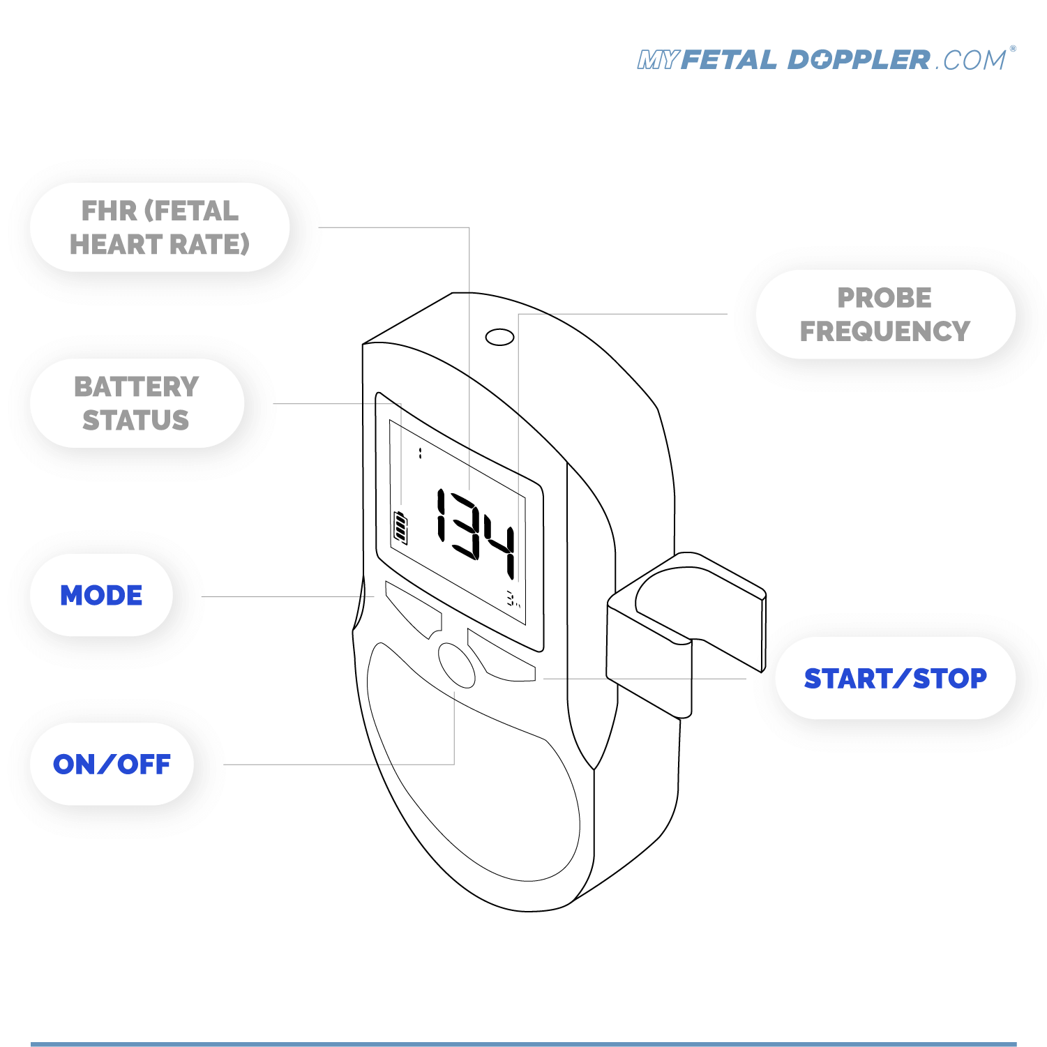 The interchangeable probe options are lightweight and ergonomically shaped to fit comfortably in the hand of the user. The 3.0Mhz probe is more sensitive than the 2.0Mhz probe and can pick up a baby's heartbeat as early as 8-10 weeks gestation. The 3.0MHz is an early-term and general-purpose baby doppler probe that will work well through most full-term pregnancies. The 2.0MHz late-term/obese pregnancy probe accommodates depths of 10cm or more.